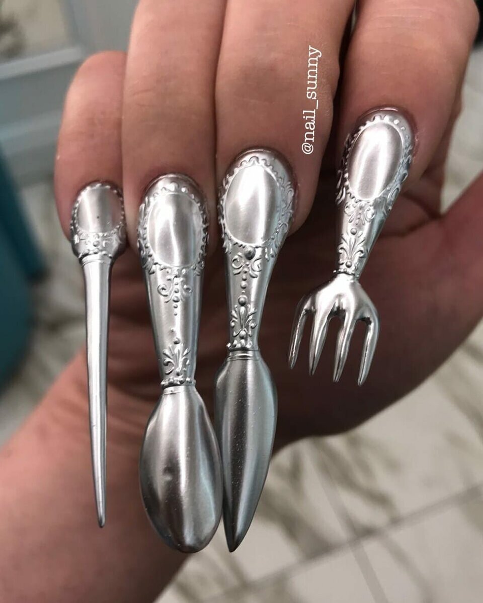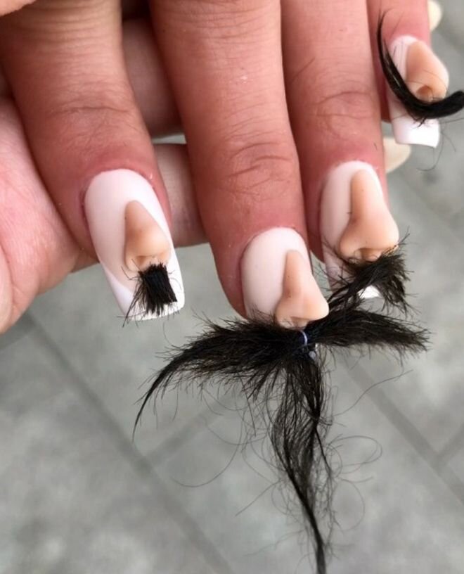 In this collection you can see strange and absurd ideas for manicure. And if you are a very positive person, with your own sense of humor, then I will leave you some ideas)) But I myself would definitely never go for this, and you?))), and we are already starting)