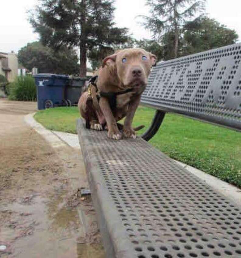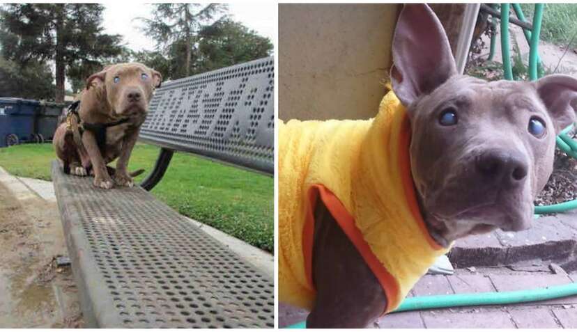 Poly must have been absolutely terrified when she was abandoned – the blind pit bull was found cowering on a bench in a park in Santa Barbara, California, earlier this month. Alone in a strange place, she was too scared to move. It wasn’t clear how long she’d been sitting alone.