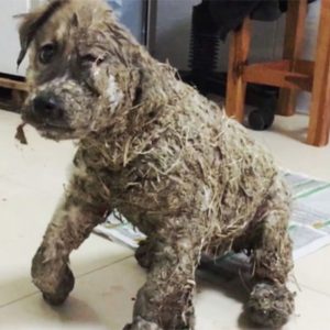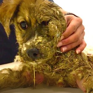 Todo comenzó cuando un grupo de individuos, lejos de mostrar compasión, decidió convertir al perro en un objeto de diversión. Derramaron pegamento sobre su pelaje, cubriéndolo casi por completo. El adhesivo se endureció rápidamente, atrapando su piel y haciendo que cada movimiento fuera doloroso y pesado. Lo que para ellos era un “juego”, para el perro significaba una tortura prolongada que ningún ser vivo merece experimentar.