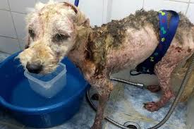 Se descubrió que Meg pesaba menos de cinco kilogramos. Uno de los peores casos que haya visto el veterinario evaluador, tenía sarna, infecciones, le faltaba medіа oreja y estaba infestada de pulgas.
