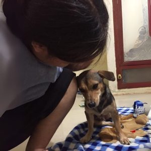 Cuando escuché esta historia, me sentí un poco escéptico, pero también me lo creí a medias. Fui a confirmarlo con la chica que criaba a la perra. Me dijo: “Esta mañana vi que la perra había desaparecido, la busqué hasta la tarde y la encontré…”. A altas horas de la noche, recogí a la niña y revisé sus heridas, pero mi cuerpo temblaba. Presenciar esta escena me enfureció tanto que incluso ahora, mientras escribo estas líneas, sigo temblando de ira. La niña era tan adorable; sus ojos parecían hablar siempre. Incluso en un lugar desconocido, se negaba a comer; simplemente se arrastraba hacia mí y mi hermana para apoyar la cabeza en sus brazos o piernas y dormir.
