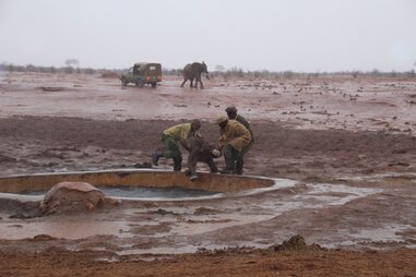 Luckily, people were watching. Some visitors reported the scene to the park authorities who arranged for a rescue team to come from David Sheldrick Wildlife Trust (DSWT), an invaluable rescue organization for elephants and rhinos.