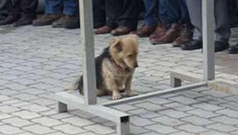 Durante la ceremonia, Cesur se sentó junto al ataúd y su cabeza se movía con tristeza. Así permaneció todo el tiempo.