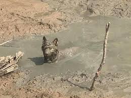 El hombre, con un corazón rebosante de amor, se arrodilla junto al perro y lo levanta con cuidado del montón de lodo. Puede sentir la fragilidad del animal en sus brazos, pero también siente su determinación de sobrevivir. Con delicadeza y ternura, lleva al perro a un lugar seguro, donde pueda recibir la atención y el cuidado que tanto necesita.
