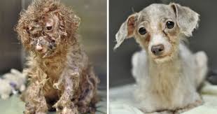 Cada vez que intentan limpiar sus heridas o administrarle medicamentos, el perro gime de dolor y retrocede, mostrando claramente su angustia y su falta de confianza en aquellos que intentan ayudarlo. Su pelaje, que solía ser suave y brillante, ahora está enmarañado y sucio, una triste representación de su sufrimiento.