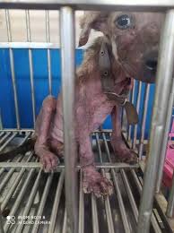 Por favor, me duele mucho. Las heridas en su piel han causado un dolor extremo al pobre perro, lo que lo hace rechazar el cuidado del equipo médico. Por favor, sean gentiles con esta situación tan desafortunada.