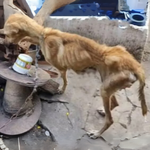 Su cuerpo, reducido a piel y huesos, apenas podía sostenerse en pie sobre el duro y helado suelo de cemento. Cada paso era un esfuerzo, y sus patas temblaban incontrolablemente. Una cadena oxidada rodeaba su cuello, marcando la piel con profundas heridas que contaban años de encierro y abandono. El aire helado cortaba como cuchillas, y el silencio del lugar solo amplificaba su soledad.