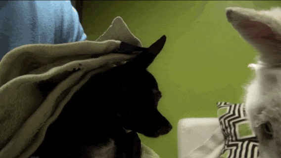 While under the care of Hope For Paws, Miley helped Frankie grow into a playful little dog.