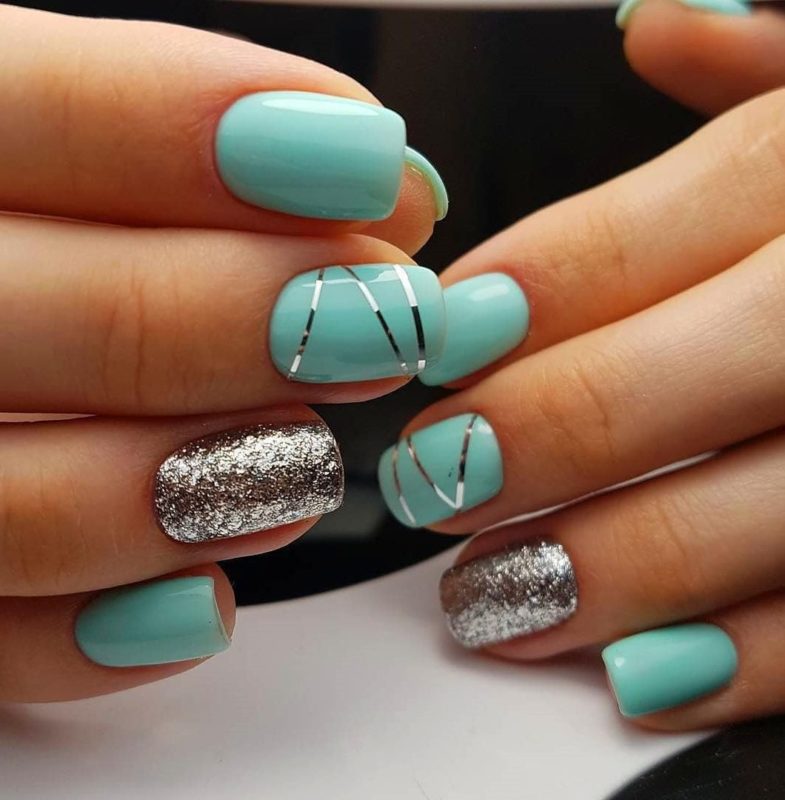 Turquoise manicure is one of the actual components of the oil. This color is also present in makeup and in the presence to create images. The nail design in turquoise is bright but calm and reserved. It all depends on what you take and on the technique you design, use for decoration.
