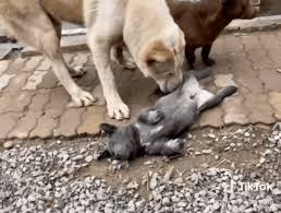 La madre perro se quedó allí, junto a su hijo herido, con la angustia reflejada en cada fibra de su ser. Con movimientos suaves y desesperados, intentó despertar a su cachorro, moviendo sus patas como si con ese gesto pudiera traerlo de vuelta a la vida. Sus ojos, llenos de lágrimas, buscaban ayuda en vano, mientras su corazón latía con la esperanza de que alguien viniera en su auxilio.